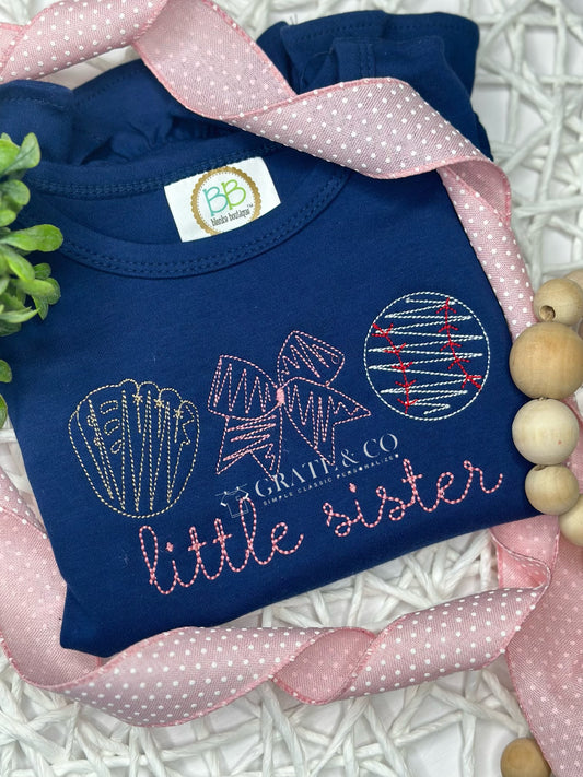Little Sister Baseball Ruffle Tee